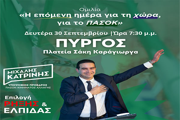 Μιχάλης Κατρίνης: «Τη Δευτέρα το βράδυ συζητάμε με τους πολίτες της Ηλείας»