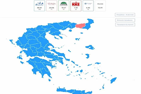 Αποτελέσματα – Εκλογές 2023: Ιστορικό νταμπλ σκορ – Στο 40,79% η ΝΔ, στο 20,07% ο ΣΥΡΙΖΑ με ενσωμάτωση 99,56%