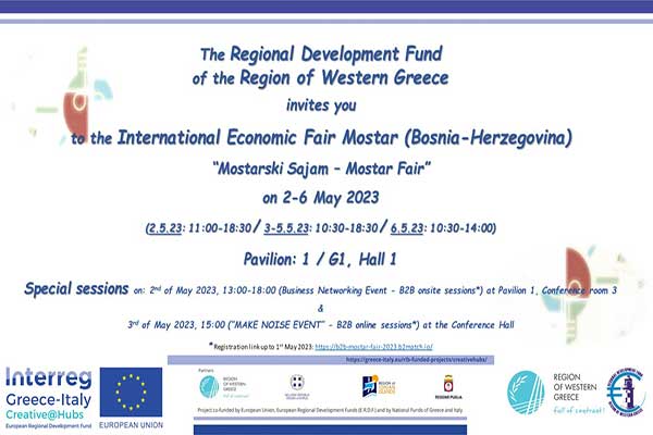 Οι Δημιουργικοί Κόμβοι της Περιφέρειας Δυτικής Ελλάδας στη Διεθνής Επιχειρηματική Έκθεση του Mostar στη Βοσνία