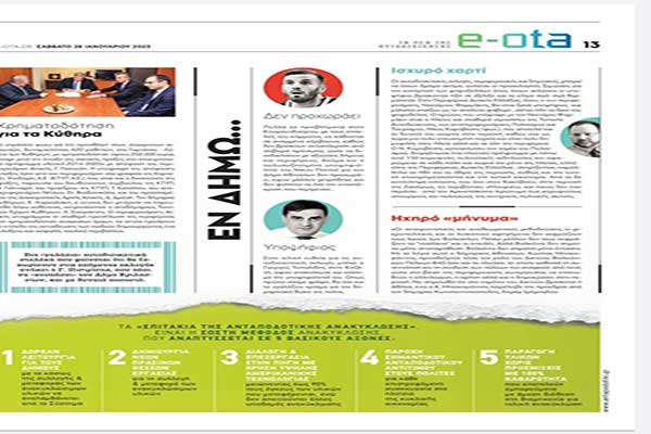 Ο Νίκος Κοροβέσης στην αθηναϊκή εφημερίδα «ΠΑΡΑΠΟΛΙΤΙΚΑ»