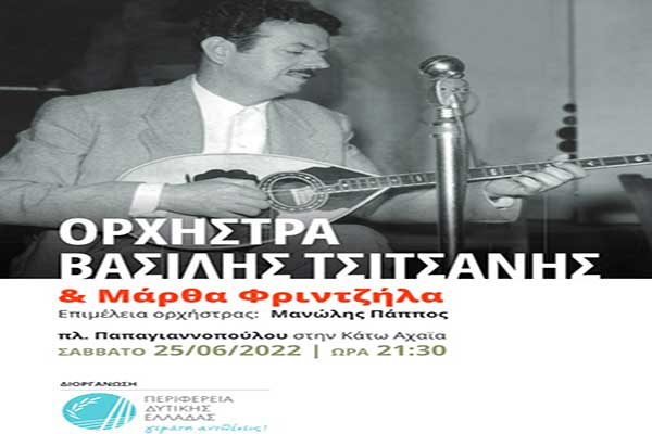 Αφιέρωμα στον μεγάλο λαϊκό Δημιουργό Βασίλη Τσιτσάνη στα πλαίσια των εκδηλώσεων «Καλοκαίρι Πολιτισμού 2022» από την ΠΔΕ