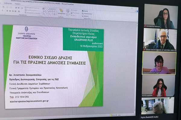 Εκπαιδευτικό Σεμινάριο από την Περιφέρεια Δυτικής Ελλάδας για τις Πράσινες Δημόσιες Συμβάσεις στο πλαίσιο του ευρωπαϊκού έργου «GRASPINNO PLUS»