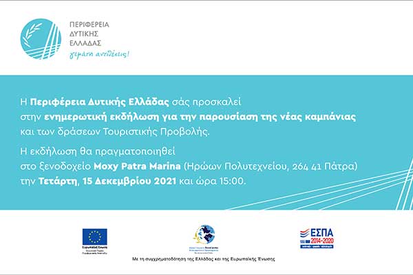 Η Περιφέρεια Δυτικής Ελλάδας παρουσιάζει τη νέα καμπάνια και τις δράσεις τουριστικής Προβολής για την περίοδο 2021-2023