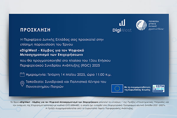 Το Έργο «DigiWest: Κόμβος για τον Ψηφιακό Μετασχηματισμό των Επιχειρήσεων» παρουσιάζεται στο RGC 2025